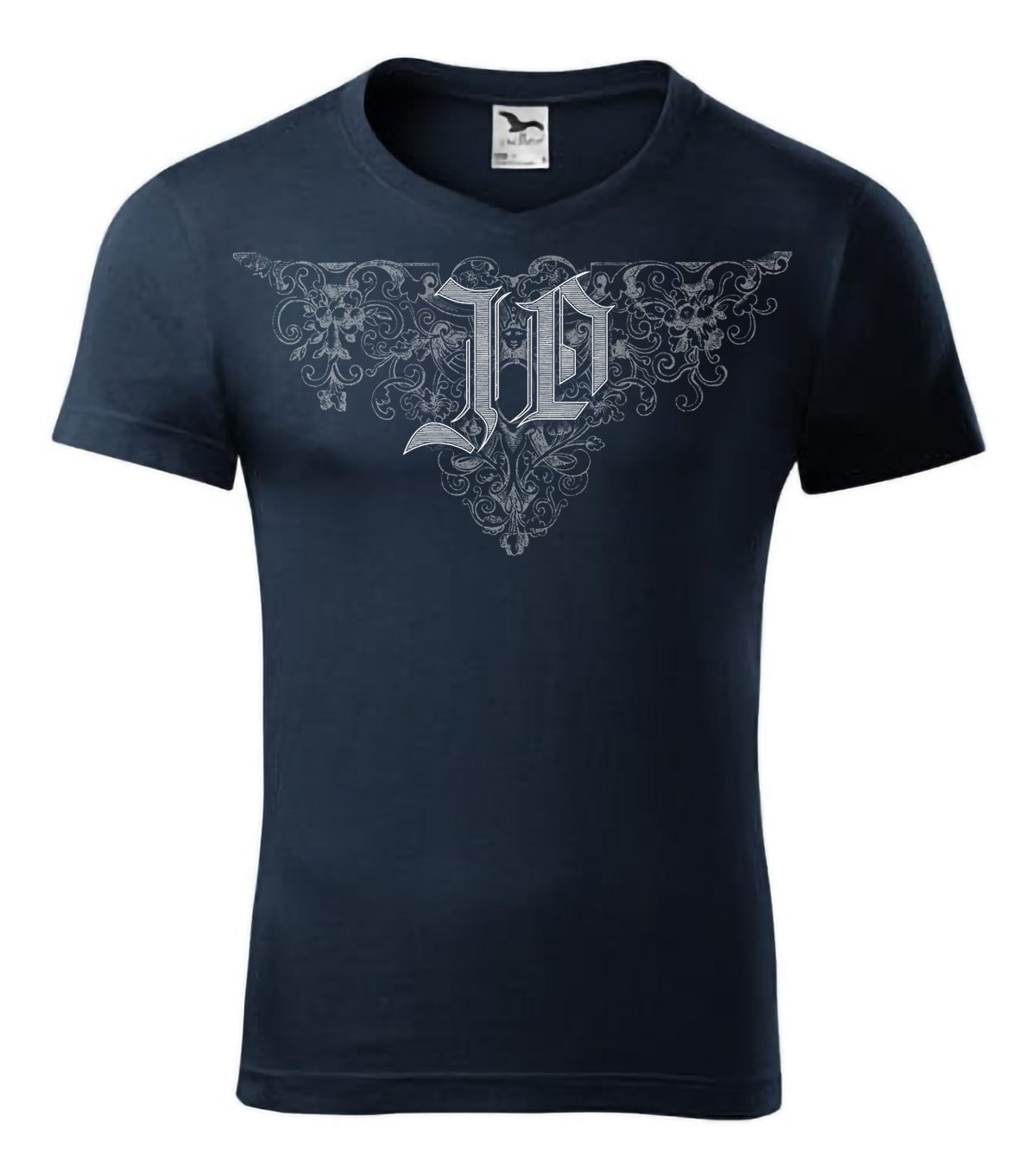 High quality, dark blue t-shirt with the logo print on the front. V-neck, slim-fit-cut, 100% cotton. Available in Male and Female options.